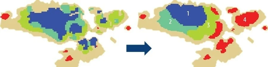 Often, the planner will try to override these issues by building some feasible pushback designs loosely based on a set of nested pit shells and by splitting and merging different envelopes. However, this often seals the decision to use a pushback sequence based on the RF-limited pit shells instead of looking for other possible sequences towards the same final envelope. Plus, as a side effect, because the traditional approach is based on maximising undiscounted cash flow for simulated price-levels through different RFs, there is no guarantee that the sequence obtained will maximise NPV and could be out of alignment with other feasibility-focused KPIs.