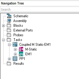 - The M-Static project calculates the biasing field around the 3D inductor model using the MS solver. The fields are automatically exported to the EM1 project.