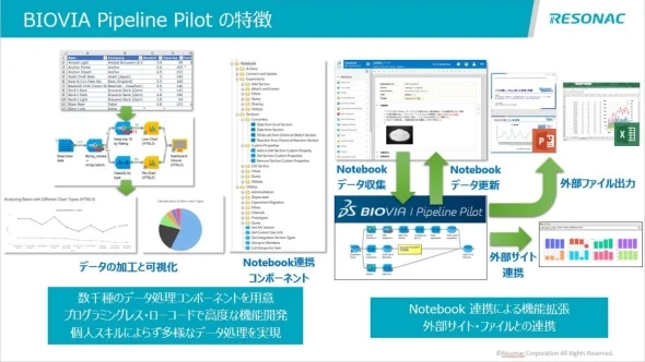 この課題に取り組むべく、レゾナックは電子実験ノート(BIOVIA Notebook)とデータサイエンスプラットフォーム(BIOVIA Pipeline Pilot)を活用し、実験データの一元管理、ダークデータの解消、データの活用を推進しています。これにより、今では実験に要する期間を1/3に短縮した事例が出ています。