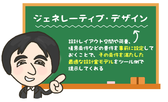 そう。設計の世界では既存の設計ノウハウを有効に活用することが多いけど、どうしても過去の知見にとらわれてしまい、新たな価値を生み出す設計などには向かないという意見もあってね。そこで出てきた考え方がジェネレーティブ・デザインってわけ。