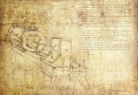 15世紀から17世紀ごろ、木材をくりぬいた木製の水道管がたくさんある町をイメージしてください。そうした木製の水道管を作るためにレオナルド・ダ・ヴィンチが設計したのが、水車の力を使ってドリルを動かし丸太を貫通させる、センタリングドリルを見てください。