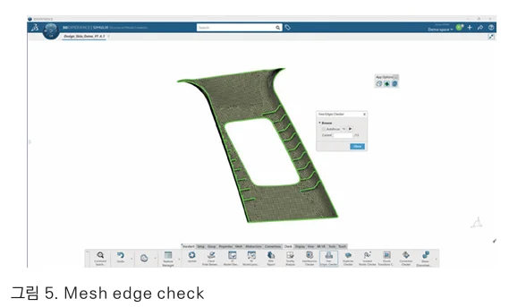 메시를 생성하고 나서 리브 구조물과의 연결 상태(edge check) 및 품질(quality)을 확인한다.