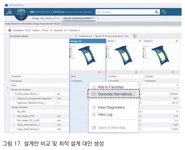 하지만 3D익스피리언스 플랫폼을 활용한다면 설계 엔지니어는 카티아나 솔리드웍스와 같은 설계 프로그램에서 설계 모델을 작성한 후 플랫폼과 바로 연동해서 구조해석, 열해석 등을 수행하고 위상최적화, 프로세스 자동화를 플랫폼 내에서 진행할 수 있다. 이를 통해 설계 엔지니어는 제품 개발 초기 단계에서 손쉽게 개념 설계를 빠르게 탐색할 수 있다.