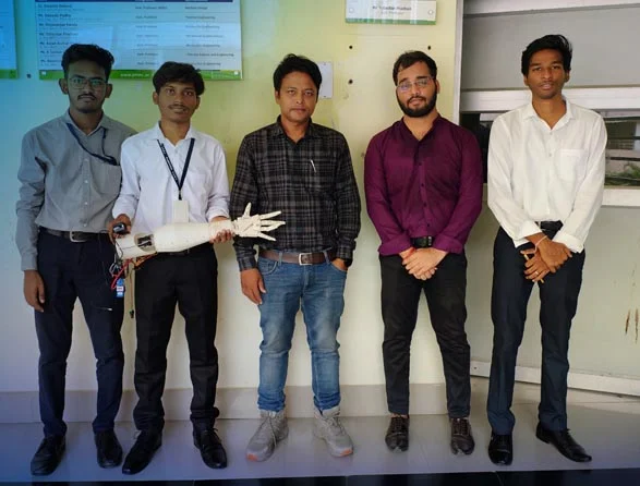 Team Vertex developed a 3D-printed, EMG sensor-based robotic prosthetic hand that allows users to intuitively control movements through muscle signals. By integrating servo motors, EMG sensors, and an Arduino board, the hand mimics natural hand movements, offering enhanced dexterity, functionality, and independence for individuals with limb loss.